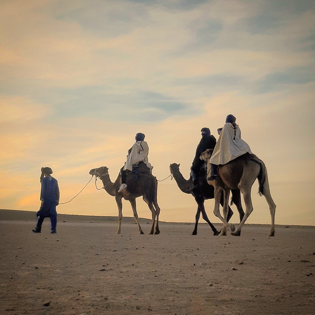 Begin with a private art walk, meeting Morocco’s most compelling contemporary voices—Hassan Hajjaj, Mounir Fatmi, or Mahi Binebine—hearing their stories firsthand. In the afternoon, surrender to a restorative hammam and massage ritual at La Sultana. As evening falls, head to the Agafay Desert for a camel ride at sunset, followed by a private dinner under the stars with live Moroccan entertainment.